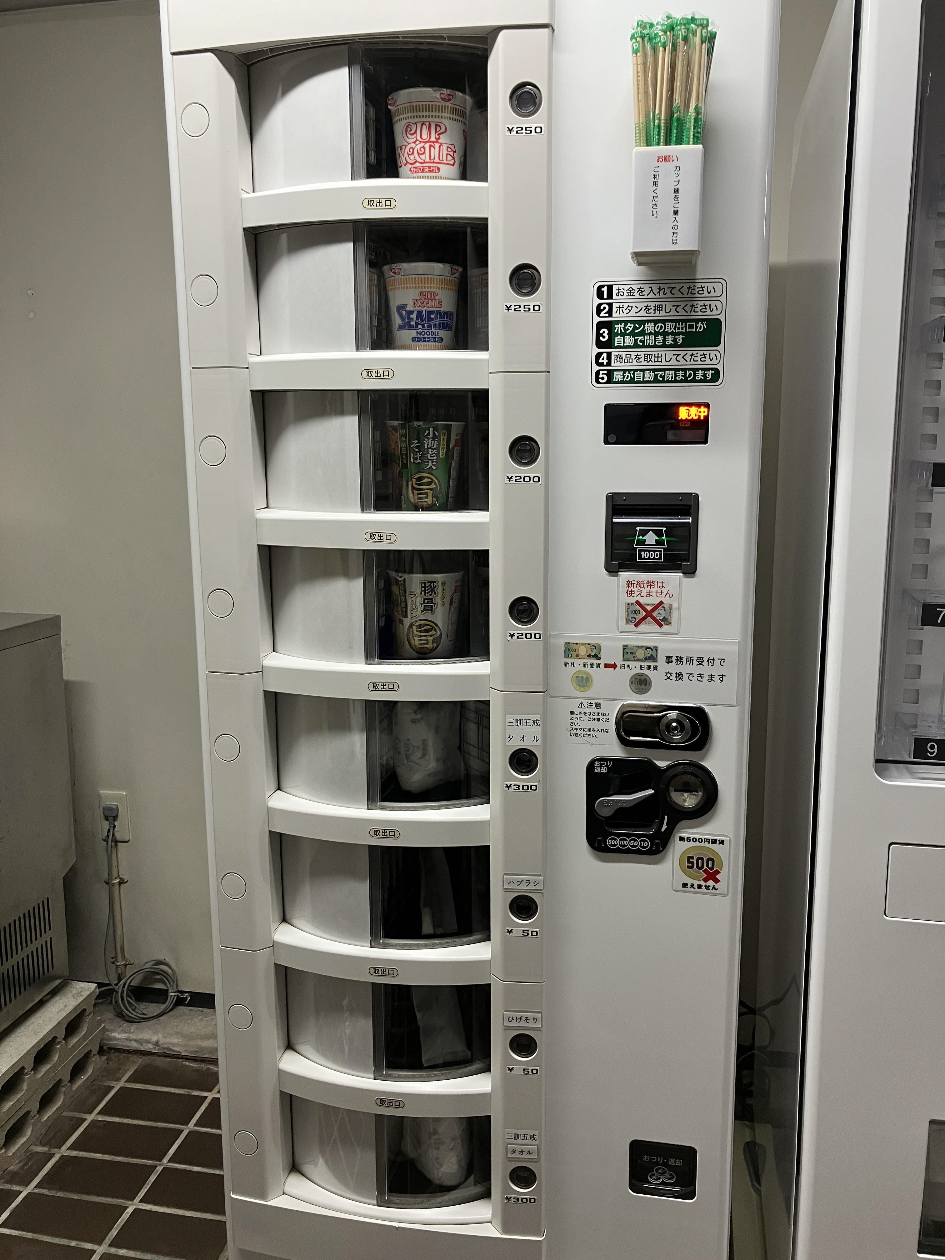 ・自動販売機(ジュース・アルコール・カップ麵)