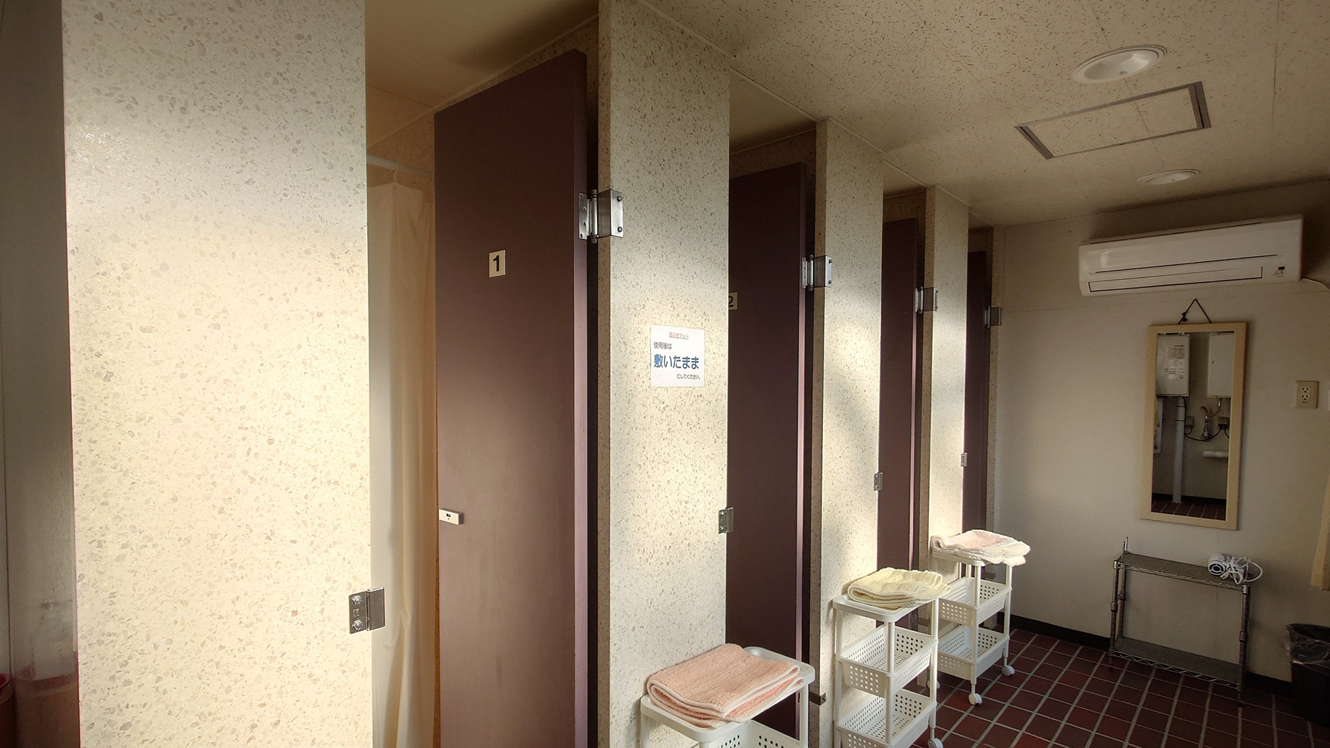 ・タオル・歯ブラシ・アメニティ一切無し。各自持参してください。