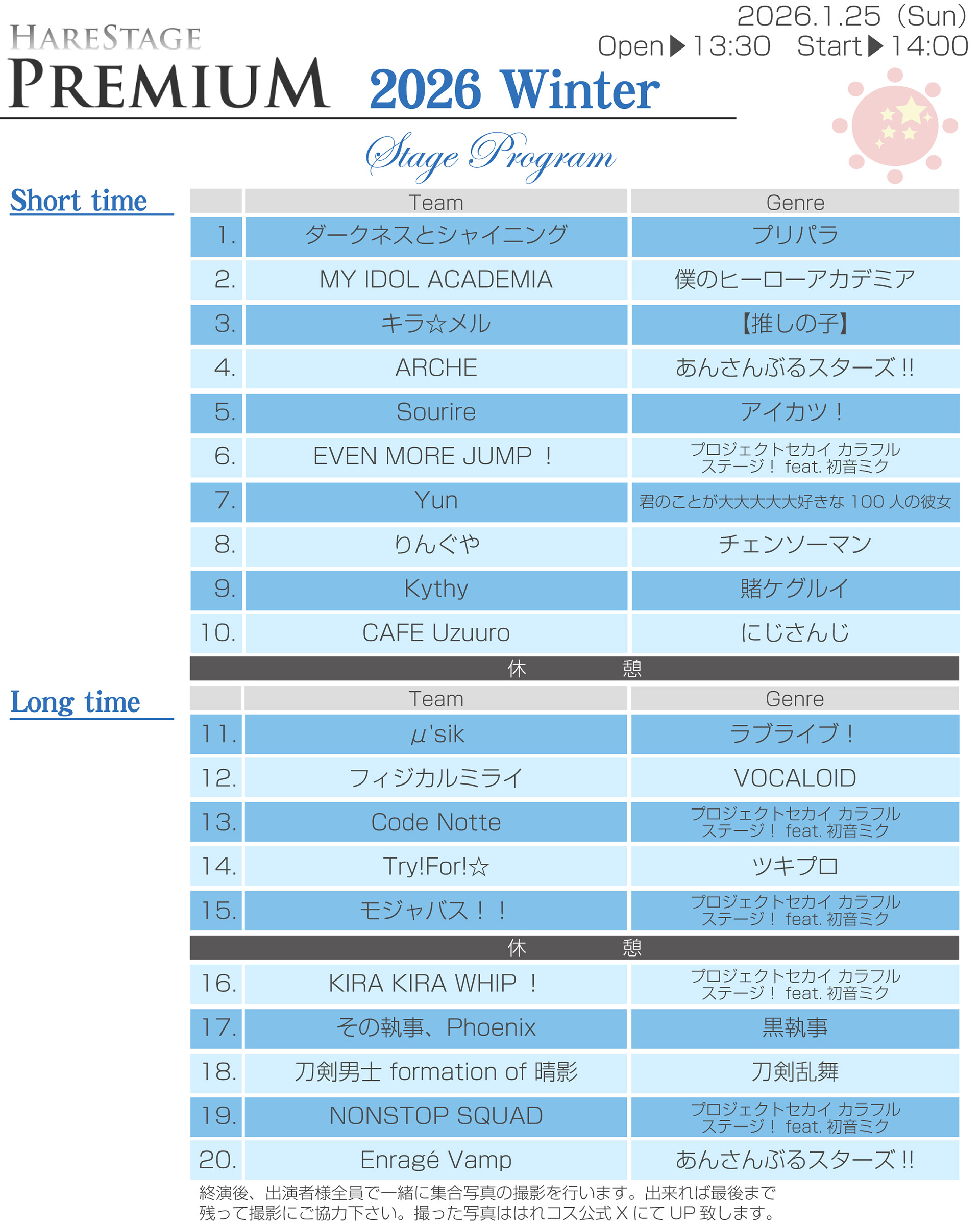 1.ステージ出演者 ※自身が出演されるステージのみ